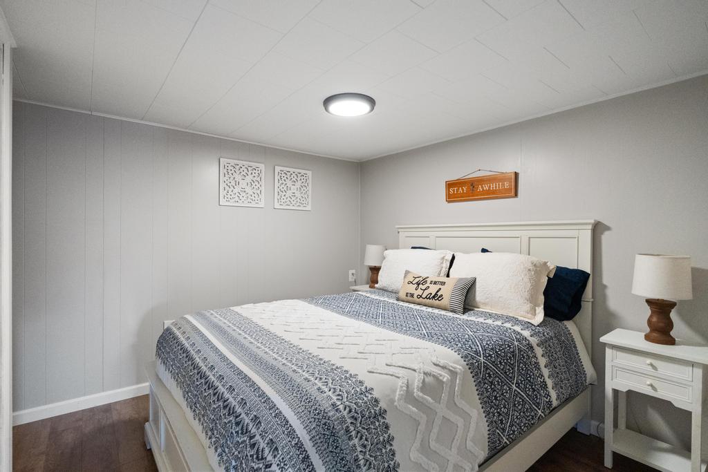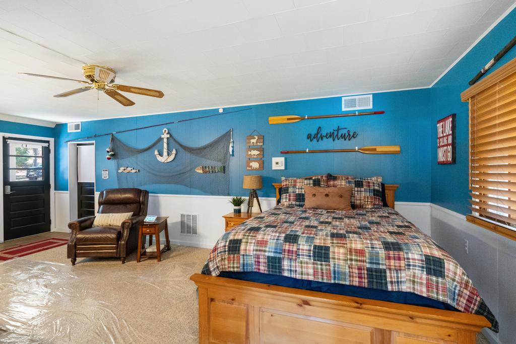 Step outside and you’re right at the water’s edge. The shallow-entry shoreline makes it easy for all ages to enjoy the lake, whether swimming, launching a kayak, or relaxing on the dock. The water is calm and ideal for a laid-back lake day.