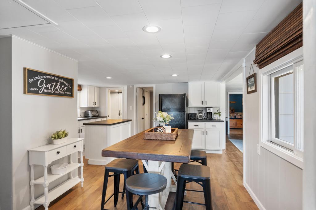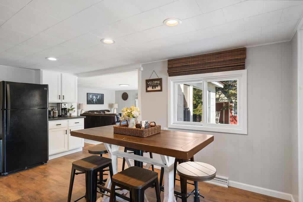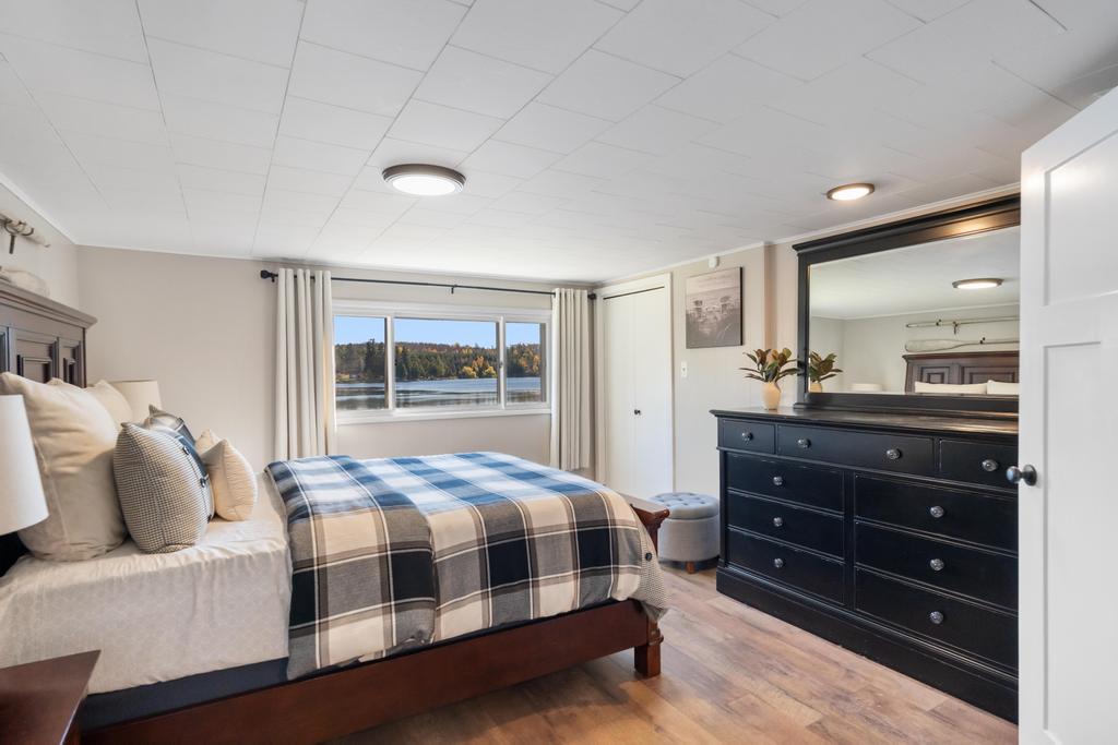 The game room adds another layer to your stay, featuring pinball, foosball, darts, and board games. Open the double doors and you’re just steps from the lake—about 15 feet from the water—creating a seamless indoor-outdoor experience.